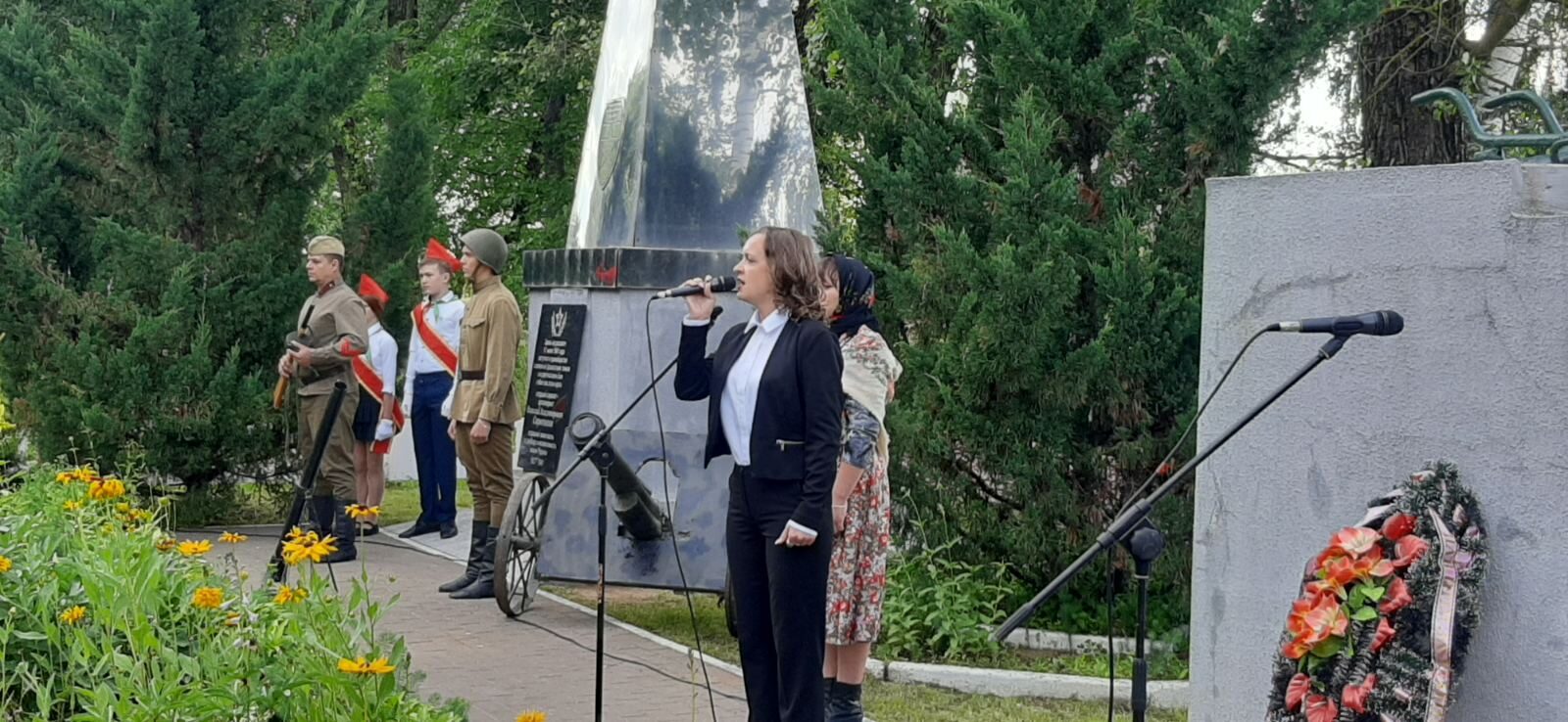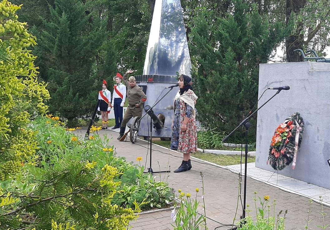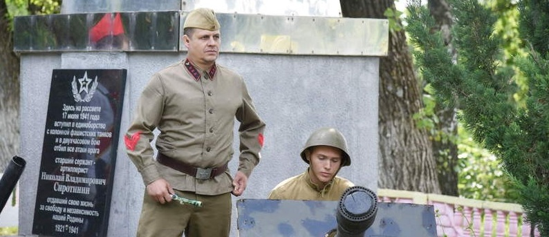 Артисты районного Центра культуры воспроизвели тот знаковый бой 17 июля 1941 года, когда артиллерист старший сержант Николай Сиротинин в одиночку уничтожил 11 танков, 7 бронемашин, 57 солдат и офицеров противника, прикрывая отступление своего полка у города Кричева. Минутой молчания присутствующие почтили память героя.
