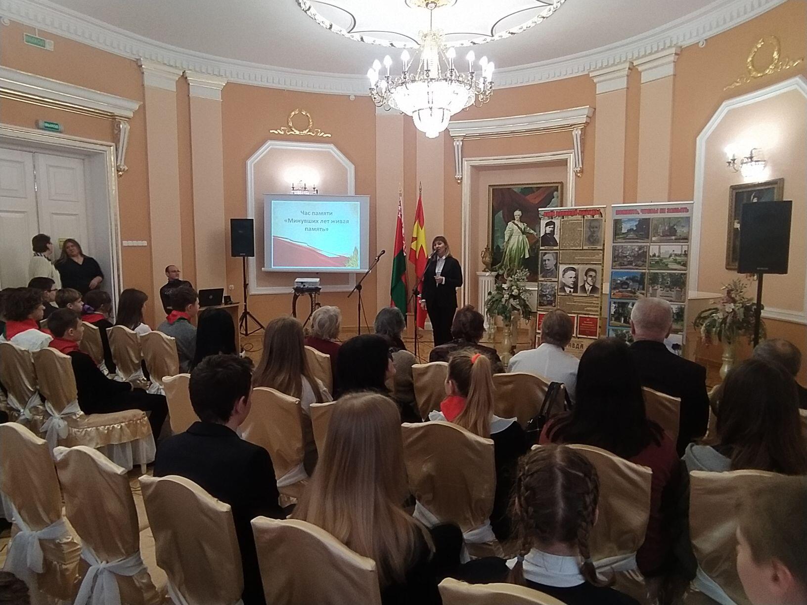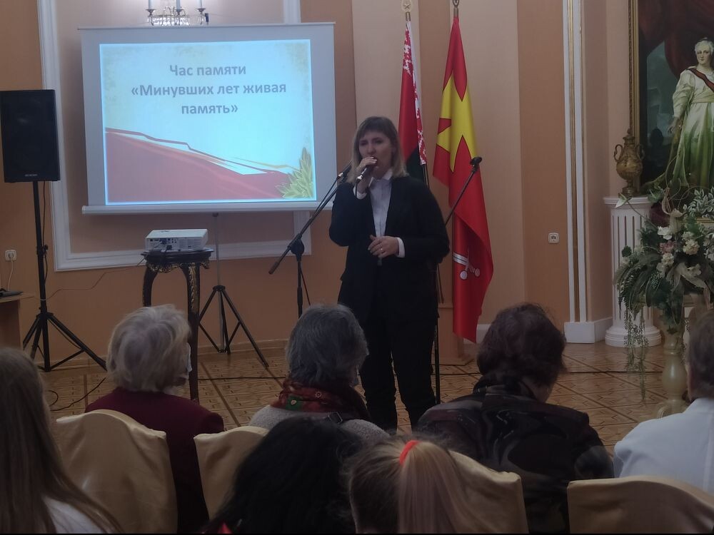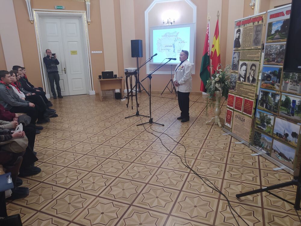 31 января во Дворце Потемкина работники районного центра культуры совместно с работниками музея г. Кричева провели совместное мероприятие — час памяти «Минувших лет живая память». Главными зрителями стали юные школьники 8-9 классов. На мероприятии вспоминали героев Великой Отечественной войны, подвиги, которые они исполнили за свою Отчизну. Работники районного центра культуры исполнили знаменитую песню «Орленок», прочитали стихотворение, посвященное жертвам Хатыни. Также на мероприятии выступил лауреат Всероссийского литературного конкурса «Герои Великой Победы» -Михаил Сыч. Он прочитал свои лучшие стихи, посвященные Героям Великой Отечественной войны.
