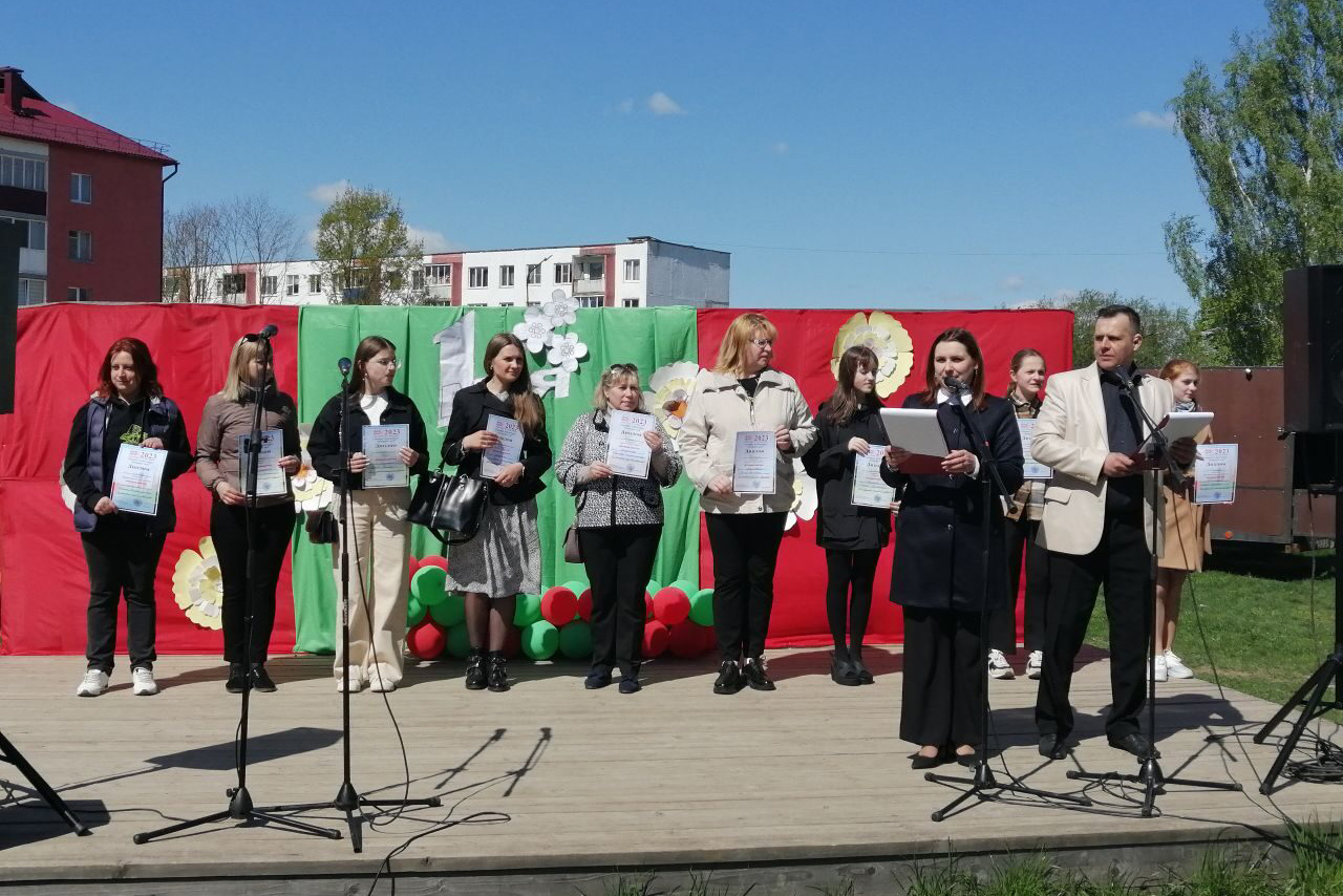 На микрорайоне Комсомольский был развернут концерт «Поет Первомай» с танцами юных талантов, песнями и награждением. Профсоюзные лидеры района различных сфер чествовали людей труда, которые создают настоящее и строят будущее. 2023 год-Год мира и созидания, а без созидательного труда нельзя создать счастливое настоящее и будущее.