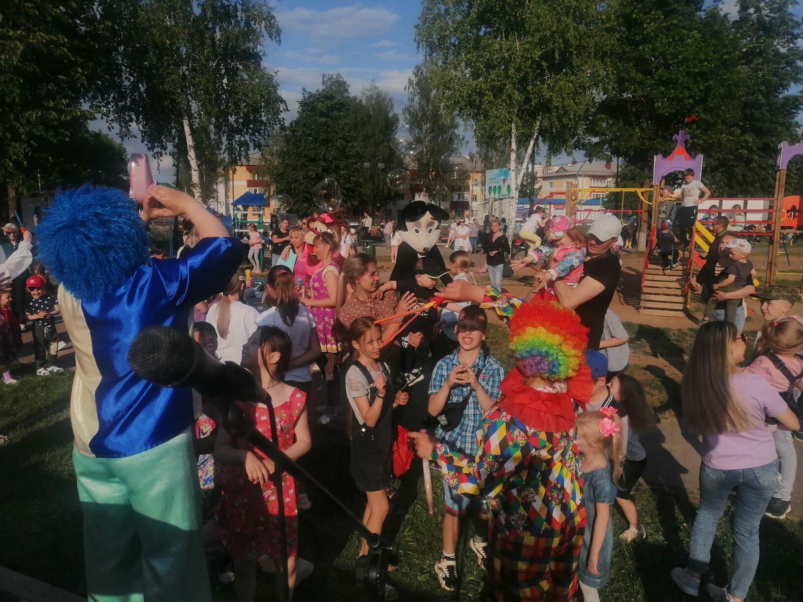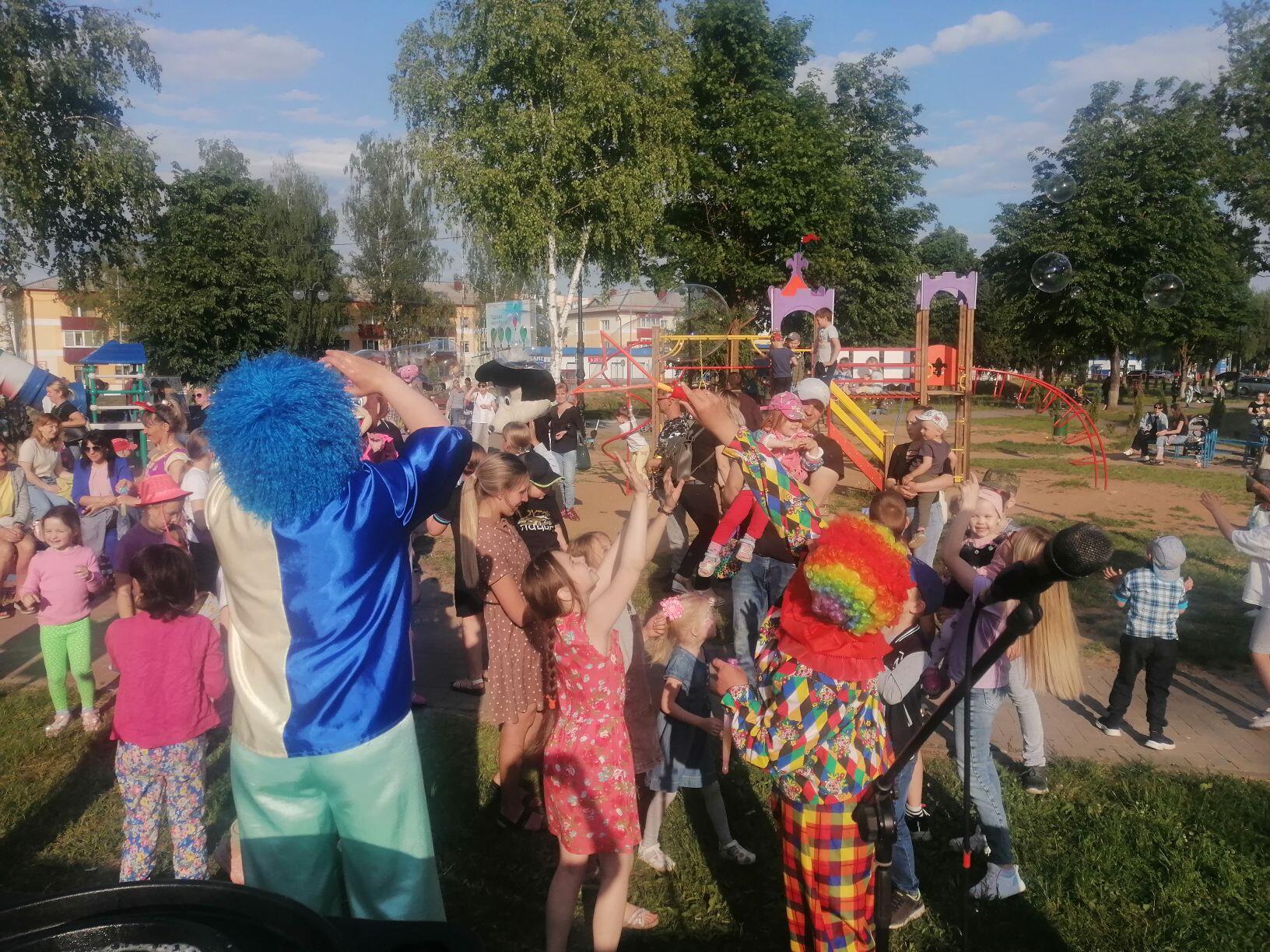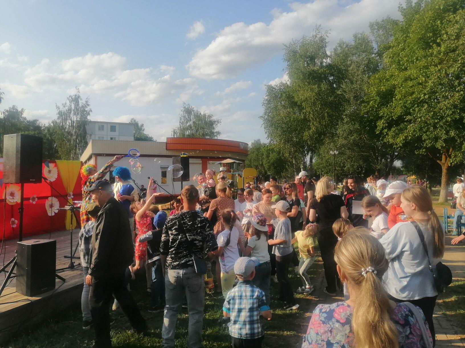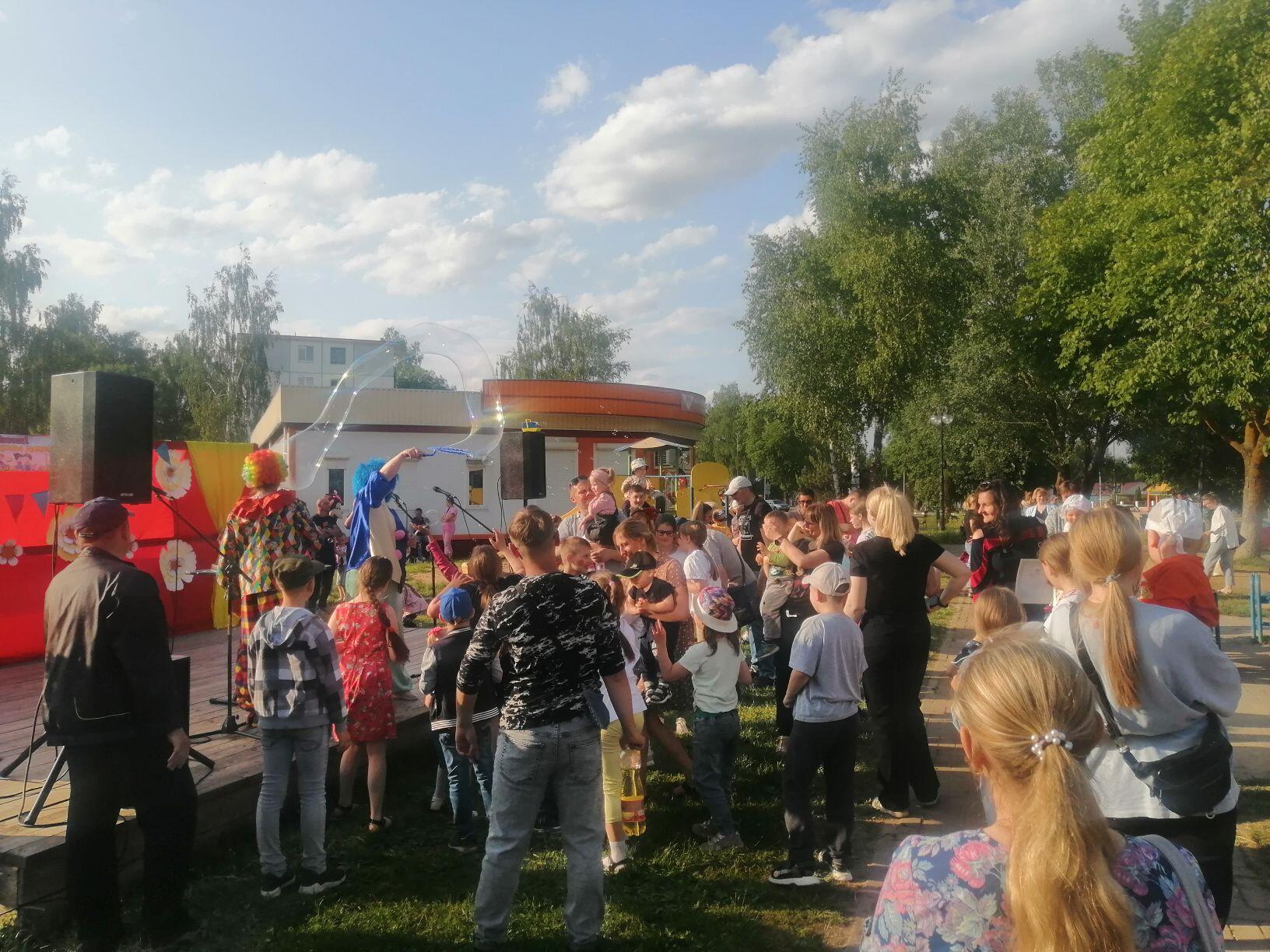 1 июня в г. Кричев для юных жителей города прошли на территории бывшего клуба «Цементник» и на площадке около кафе «Апельсин» развлекательные программы «Яркие краски лета», флеш-акция «Мир на планете-счастливые дети», игровые и концертные программы с клоунами, ростовыми куклами, мыльными пузырями, рисунками на асфальте и многим другим.