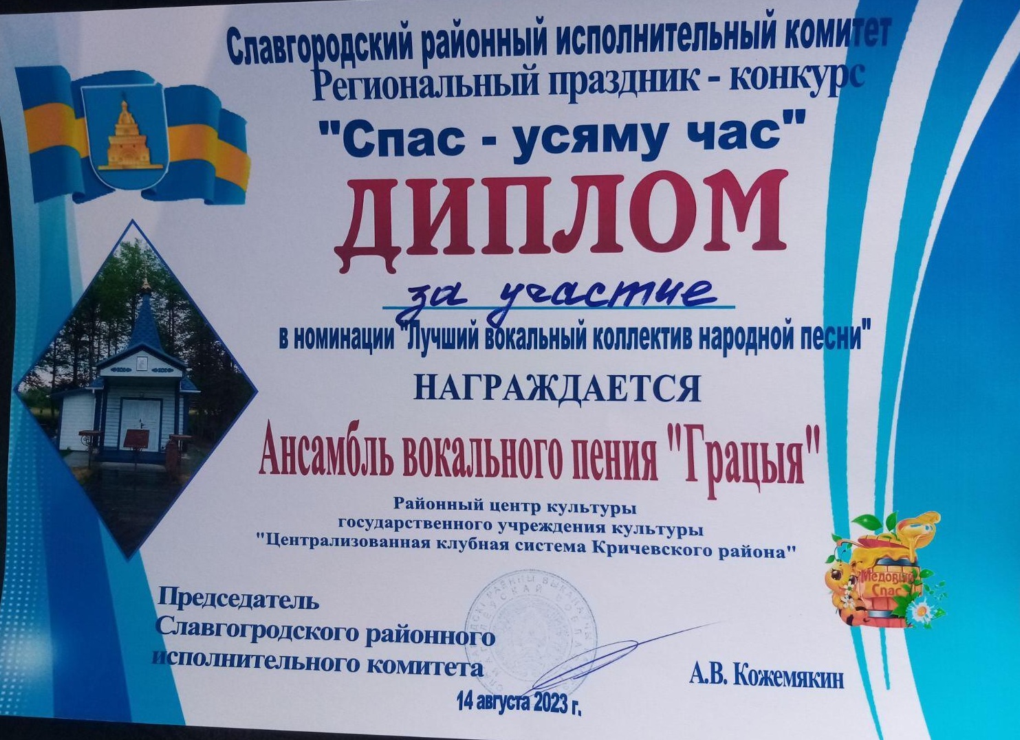 Крычаўскі раён таксама прымаў удзел у гэтым святе «Спас-усяму час». ДУК «Централізаваную клубную сістэму Крычаўскага раёна» прадстаўляла тры калектыва: