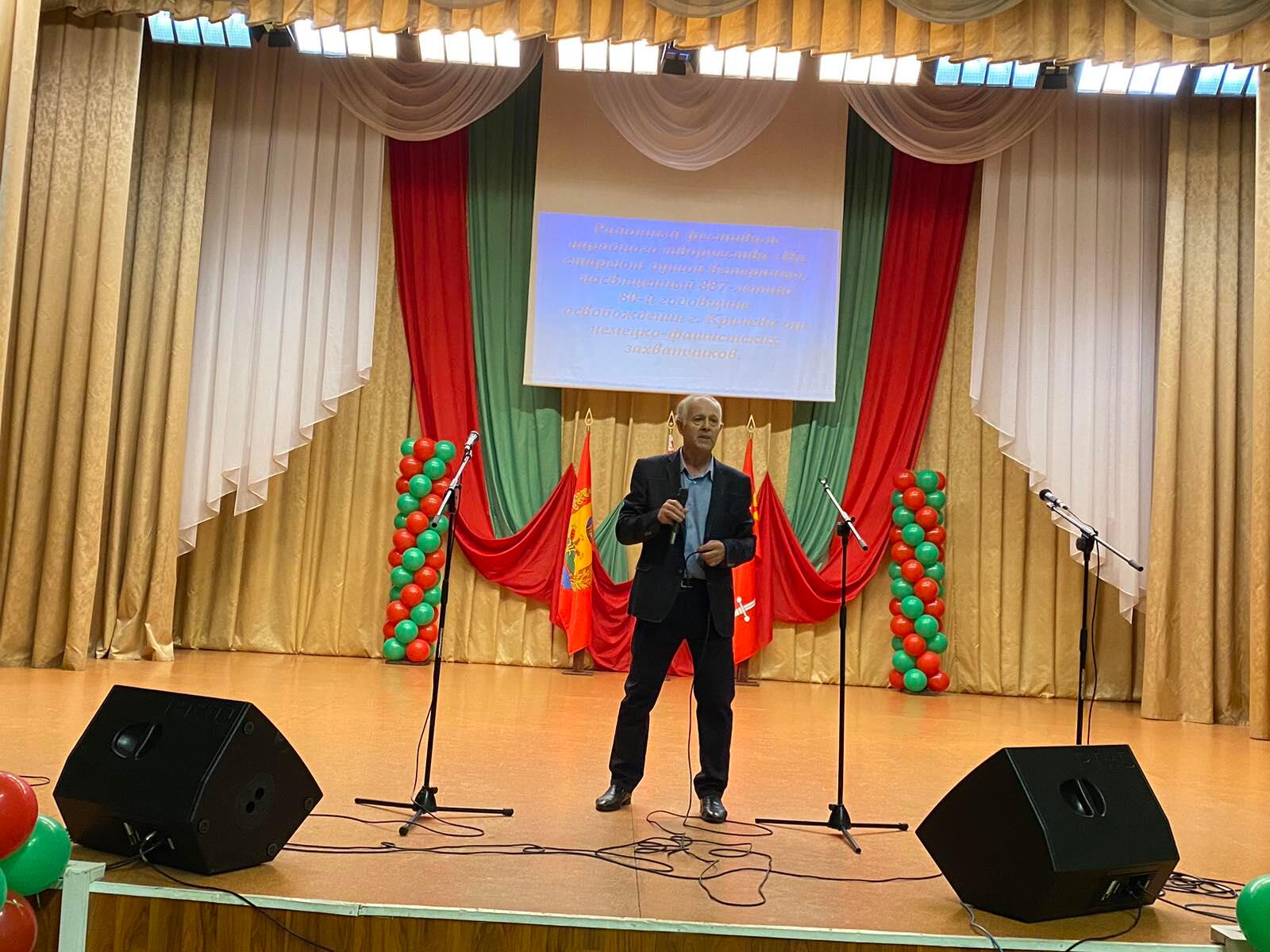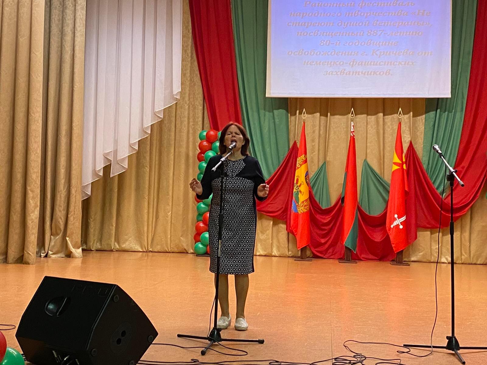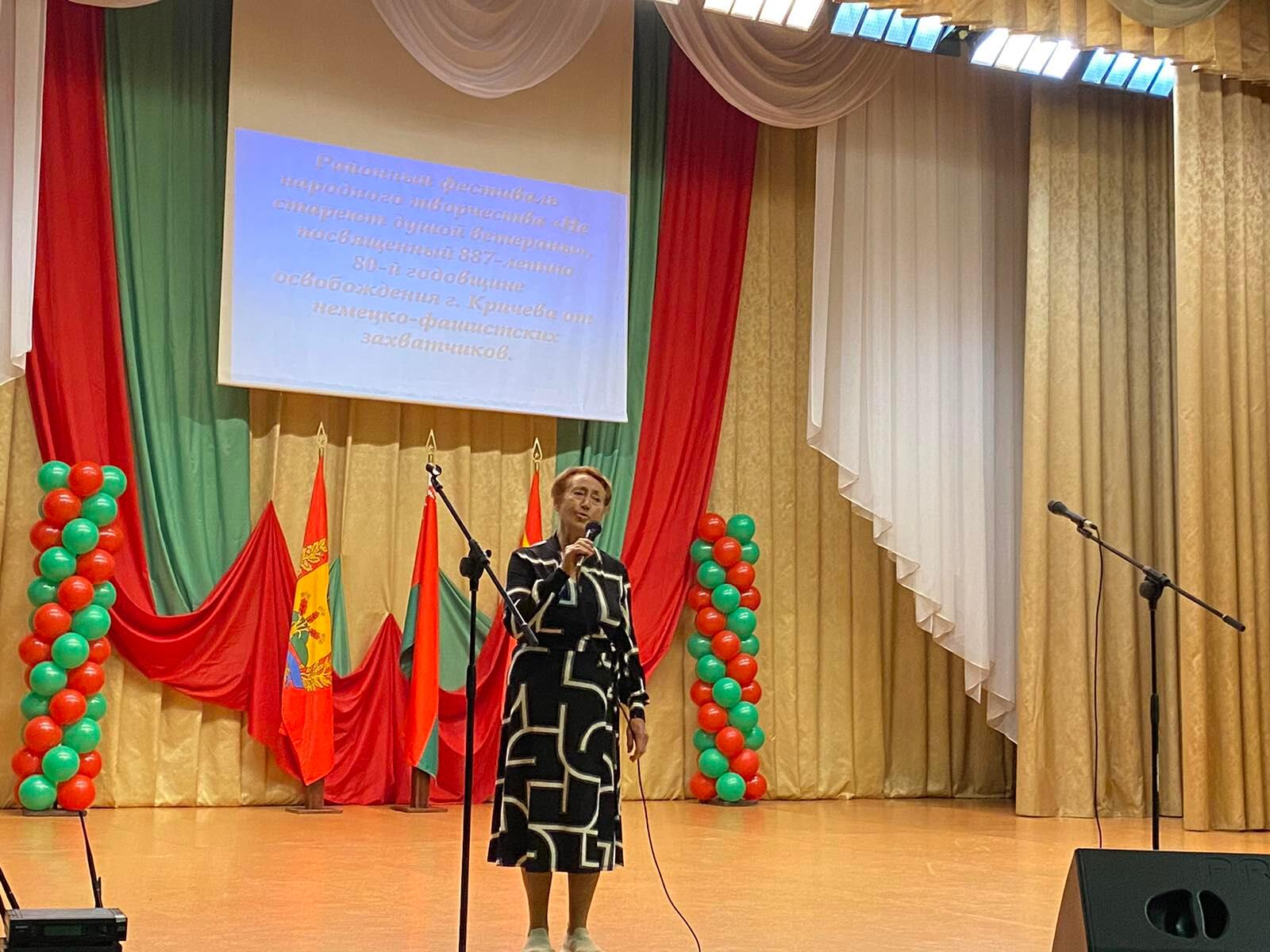 В преддверии Дня города в районном Центре культуры прошел районный фестиваль народного творчества «Не стареют душой ветераны», посвященный 887-летию и 80-летней годовщине освобождения г. Кричева от немецко-фашистских захватчиков. Цель фестиваля — создание условий для реализации творческого потенциала людей старшего поколения, содействие развитию художественной самодеятельности среди ветеранов, поддержка творческих и талантливых исполнителей.