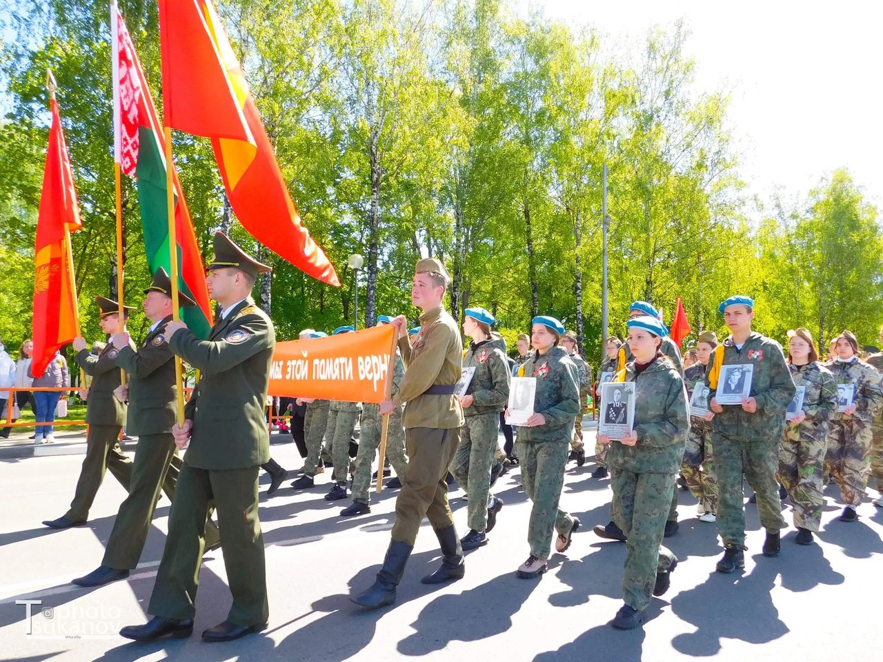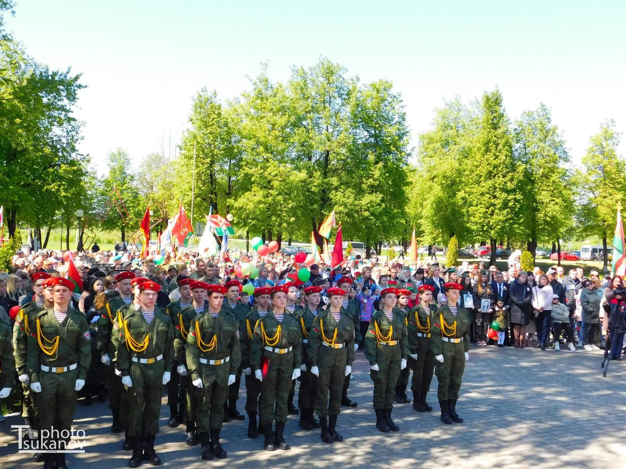 9 мая наш город окунулся в атмосферу праздника, пропитанного духом патриотизма, бесконечного уважения к павшим и ныне живущим героям Великой Отечественной войны. В торжественном шествии «Мы этой памяти верны» приняли участие кричевляне, представители организаций и предприятий, школьники, дети и молодежь Кричевщины. Шествие стало примером восхищения героями Великой Отечественной войны, признания их бессмертного подвига, который и сегодня находит живой отклик в наших сердцах. Конечной точкой шествия стал митинг в честь Великой Победы «Мы помним, мы гордимся!», который прошел у Кургана Славы, где прозвучали слова благодарности, тем людям, которые неимоверной ценой завоевали Великую Победу, и кто сложил головы на фронтах Великой Отечественной войны и всех тех, кто ушел от нас, не дожив до этой даты. Праздник продлился на малой концертной площадки, где была представлена театрализованная, концертная программа «Нам дороги эти, позабыть нельзя...», а также работали фронтовые агитбригады — победители и участника районного смотра-конкурса Фронтовых бригад. В Парке Победы для жителей и гостей города был организован Партизанский лагерь с солдатской кашей и ухой.