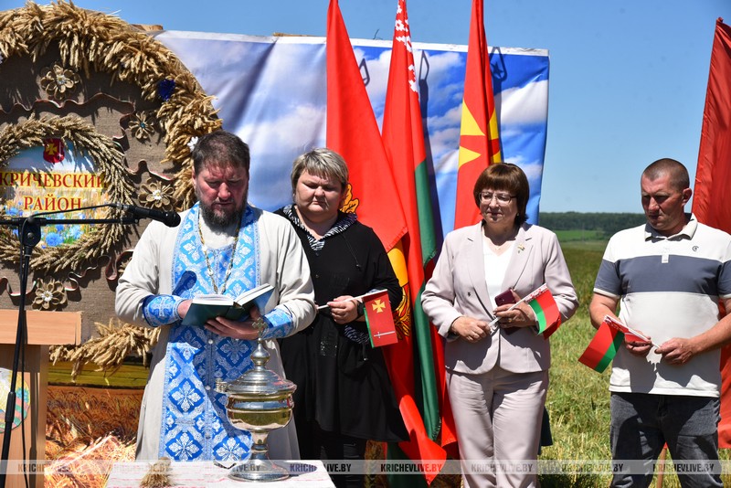 Работники Кричевского районного Центра культуры приняли участие в данном мероприятии. Прозвучали поздравления, проведено театрализованное представление обряда «Зажынкі». Жнеи собрали первый сноп и вручили его первому заместителю председателя райисполкома – начальнику райсельхозпрода Светлане Ермоленко, а Иерей Сергий провел молебен на начало всякого доброго дела, он пожелал здоровья, благополучия, терпения, мудрости на это предстоящее важное и нелегкое время.